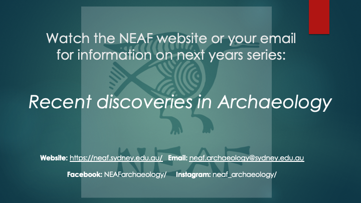 Welcome to NEAF, a Foundation of the University of Sydney. Join us for a fascinating study of the past.